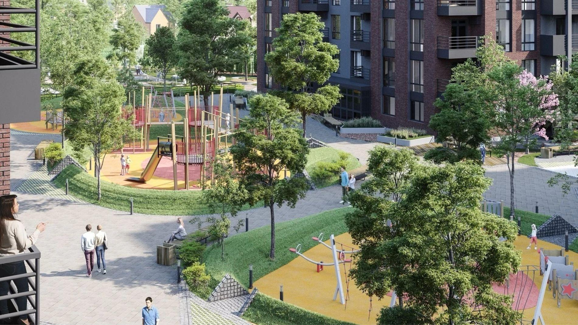 В дворі буде місце для відпочинку, дитяча зона та гарний ландшафт!