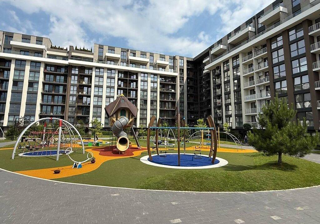 Великий внутрішній двір із дитячими майданчиками та зоною для барбекю ідеально для сімейного відпочинку.